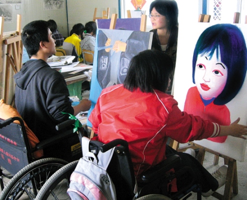 現(xiàn)在靠文化課上本科,對這屆畢業(yè)生來看,我覺得很難。不過,從去年開始,我們有意識地動員高三學(xué)生突擊學(xué)畫畫,畢竟藝術(shù)考生文化成績不高,而且對殘疾人來講,學(xué)畫畫也是一個不錯的出路。著名畫家周春芽還專門輔導(dǎo)了我們這些學(xué)生。這次有30多名畢業(yè)生參加了藝術(shù)類統(tǒng)考,成績不錯,估計有10多人可以上本科院校。
