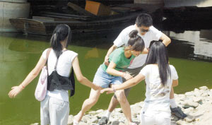 一群大學(xué)生在大胡同附近的河邊“演戲”,有人扮演輕生者,有人扮演勸阻者,他們這樣做是想向同齡人宣傳珍愛生命。不過,在不少圍觀者看來,在鬧市區(qū)如此“演戲”,作秀的成分似乎多于宣傳。
