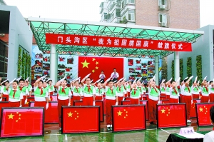 本報訊(通訊員李劍韜)昨天上午,門頭溝區(qū)大峪二小舉行了“我為祖國繡國旗”獻(xiàn)旗儀式。41面由全區(qū)3萬余名學(xué)生、教師一針一線精心繡制的五星紅旗獻(xiàn)給祖國!拔覟樽鎳C國旗”活動歷時97天,3萬多名學(xué)生、教師和家長積極參與了國旗的繡制。41面國旗,共計1300萬針,用線總長達(dá)15萬米。這根15萬米長的紅線,足以把北京的最高峰靈山和祖國的心臟天安門緊緊聯(lián)在一起。