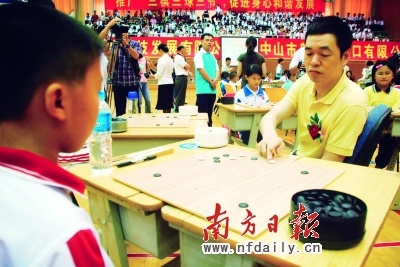 前日,“中國(guó)移動(dòng)杯”中山市首屆中小(幼)學(xué)生智力運(yùn)動(dòng)會(huì)在中山市一中正式拉開(kāi)帷幕,我國(guó)國(guó)際象棋大師謝軍、圍棋大師馬曉春和中國(guó)象棋大師呂欽來(lái)到現(xiàn)場(chǎng)并與中山小棋手進(jìn)行了車(chē)輪表演賽。