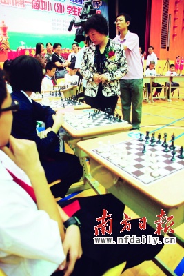 在比賽進(jìn)行至后半期時(shí),只剩下三名選手同呂欽對(duì)壘,其中兩名小學(xué)生,一名初中生,而比賽周邊也里三層外三層圍滿了觀眾和敗下陣來(lái)的小選手。對(duì)峙良久后, 最后只剩下一名小學(xué)六年級(jí)的學(xué)生繼續(xù)鏖戰(zhàn),由于受時(shí)間限制,呂欽便主動(dòng)提出了和局的要求,沒(méi)想到呂欽的要求居然被這位小選手拒絕。