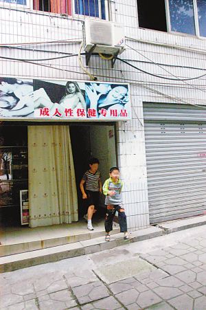 昨天,記者來到這家成人用品店,外面一個醒目招牌上,有3名熱辣女郎搔首弄姿,約10平方米店面擺放著各種成人用品。店內(nèi)一側(cè)有一條狹長通道,是通往二樓游戲廳的必經(jīng)之路。