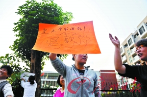 昨日下午4時,數(shù)10名家長聚集在了該幼兒園門口,部分心情激動的家長還打出了寫著“堅決反對漲價”和“退回多收學(xué)費”的牌子。