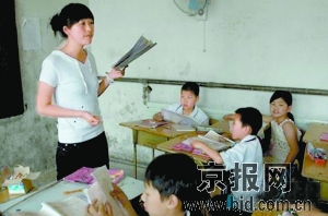 “在這個很簡陋但整齊的教室里坐著50多個小學生,生于1986年的姚老師已經在這里任教兩年。她帶兩個班,同時是一個班的班主任。每月工資雖然只有800元左右,每天工作十幾個小時,但她沒覺得苦!