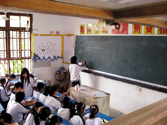 昨天下午3時(shí)許,羊城晚報(bào)記者來到甲子第一中學(xué)。下午第二節(jié)課的上課鈴恰好敲響,在操場課間休息的學(xué)生們紛紛跑回教室,也有不少學(xué)生磨蹭著不肯進(jìn)去。羊城晚報(bào)記者從教學(xué)樓的一樓走至三樓,只見不少教室均看不到老師在授課,學(xué)生們被安排自習(xí),有班干部在黑板上抄寫練習(xí)題!坝袥]有老師給你們上課呀?”有幾個(gè)靠門口的同學(xué)搖搖頭,稱他們從早上開始就自習(xí)了。