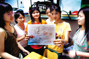 聽到女兒有人資助上大學(xué),李田珍的父母有點擔(dān)心:“不會是騙子吧?他們?yōu)槭裁匆獛湍?”“只要我能上學(xué),其它我什么都不管!币恍南胍洗髮W(xué)的李田珍拿著母親為她粘好的通知書,坐上了開往廣州的火車。