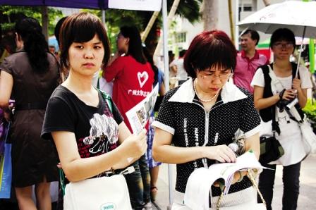 昨日氣溫高達(dá)35攝氏度,太陽下的大學(xué)城像個(gè)蒸籠。家長(zhǎng)、考生和高校老師們汗流浹背,各高校的教師、領(lǐng)導(dǎo)一直堅(jiān)持在崗位上;考生往往是全家出動(dòng)。廣州市招辦組織家長(zhǎng)和考生分坐30部大巴免費(fèi)在廣州大學(xué)主會(huì)場(chǎng)和各高校間穿梭參觀。