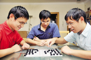 上學(xué)以后,施媽媽說,自己操的心反倒不多了。小學(xué)布置默生詞,她讓三個(gè)孩子互相默寫;檢查作業(yè),她也不插手,讓兄弟仨互換檢查。老三葉誠(chéng)輝在一旁插話說:“三胞胎的好處挺多的,學(xué)習(xí)上不懂的可以互相請(qǐng)教,生活中也比同學(xué)有更多的樂趣!睆男〉酱,三胞胎成績(jī)一直名列前茅,從沒有補(bǔ)過課,考第一名也沒什么獎(jiǎng)勵(lì)。到了高中,他們的學(xué)習(xí)也很輕松,基本不開夜車!叭诵小边有一大好處是,學(xué)習(xí)上有不同見解,三人可以經(jīng)常爭(zhēng)論。