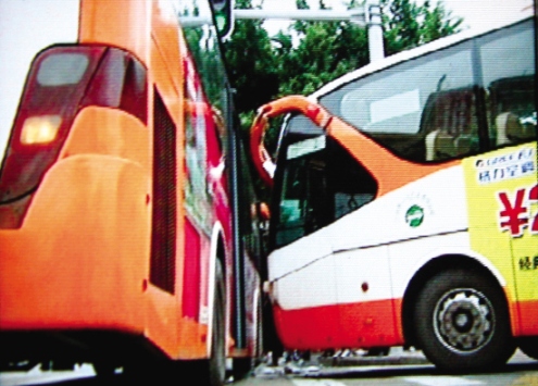 呈90度角“狹路相逢”的兩輛公交車,生生夾死了剛剛下車的18歲女大學生。