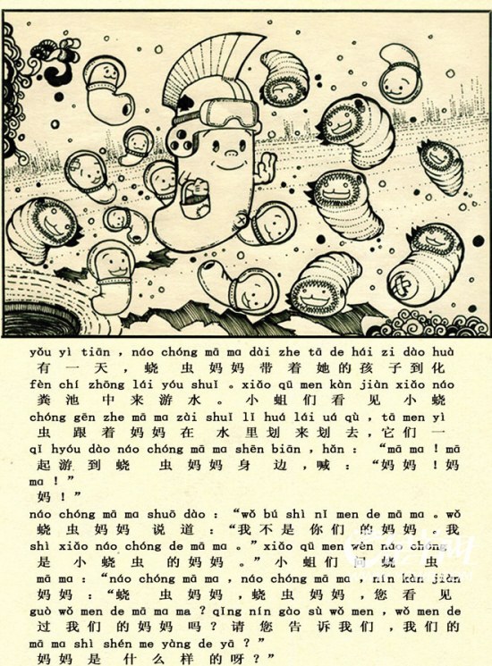 《小蛆蟲(chóng)找媽媽》的廣泛傳播,除了引發(fā)對(duì)教材改革的爭(zhēng)辯,還讓很多網(wǎng)友發(fā)出“人生的感嘆”。網(wǎng)友“大雄”認(rèn)為:“《小蛆蟲(chóng)找媽媽》不無(wú)深度———好人要活,壞人也要活;富人要活,窮人也要活;努力工作的人要生活,好吃懶做的人也要生活。這好比我們喜歡的可愛(ài)蝌蚪要生活,而讓人一聽(tīng)就吃不下飯的蒼蠅也得生活。人們看問(wèn)題往往帶上感情色彩,以情感判斷和價(jià)值取向來(lái)判斷事物。但我們有必要讓孩子知道,世界上的事物不是一切都是美好的,只有從多角度對(duì)孩子進(jìn)行教化,才讓他們更接近于現(xiàn)實(shí)!