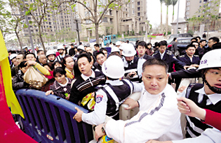 28日凌晨下起了淅瀝小雨,氣溫驟降。部分家長提出,學(xué)校能否以派籌的方式讓排隊的家長先回家休息。學(xué)校沒有及時出面解釋,有家長開始質(zhì)疑學(xué)校有意無意地通過排隊引起轟動,提高學(xué)校知名度。據(jù)該校一位劉姓負(fù)責(zé)人回憶,去年報名當(dāng)日清晨6時沒人來,到了8時也就60多人排隊!敖衲晡覀冇媱澱12個班,每個班40名學(xué)生!绷硪晃涣盒肇(fù)責(zé)人坦言,盡管學(xué)校做足了準(zhǔn)備工作并提前知會了民警,但還是沒料到“家長們來得這么早”。1日上午10時許,當(dāng)學(xué)校老師走向隊伍中“抱歉地通知家長”新生報名表已經(jīng)發(fā)放完畢時,排在隊尾的家長們開始大聲質(zhì)問學(xué)校并往前擁擠,警方為此增派警力維持秩序。