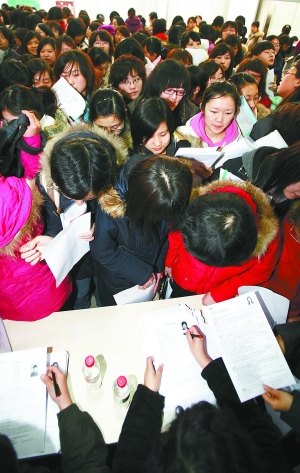 市人事局新聞發(fā)言人張祖德介紹,用人單位對研究生、本科、專科學歷的要求分別可達42.6%、44.3%和13.1%。今年北京生源將達到9萬人,其中碩士研究生以上學歷的不到1萬人、本科畢業(yè)生有4.4萬人、專科畢業(yè)生人數(shù)有3.8萬。目前來看,就業(yè)形勢比較嚴峻的主要是?飘厴I(yè)生。自上月以來已經(jīng)舉行了 150場針對應屆畢業(yè)生的專場招聘會,所提供的8萬余個崗位中已有四分之一達成意向。 RB156