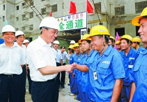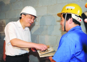 李克強(qiáng)來(lái)到正在建設(shè)中的管莊保障性住房項(xiàng)目,看望并慰問(wèn)一線建筑工人、技術(shù)人員和管理人員,鼓勵(lì)他們精心施工、把好質(zhì)量關(guān),把這一重大民生工程建設(shè)好,讓群眾住得安心、舒心。遠(yuǎn)洋地產(chǎn)行政總裁李明在現(xiàn)場(chǎng)向李克強(qiáng)匯報(bào)了項(xiàng)目進(jìn)展情況。
