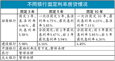 不過(guò),如果李女士只能申請(qǐng)到基準(zhǔn)利率甚至利率要上浮10%,則選擇固定利率房貸有著數(shù)。目前5年以上貸款的基準(zhǔn)利率為5.94%,而招行的5年期部分固定利率可優(yōu)惠至5.85%,已經(jīng)比基準(zhǔn)利率還低,建行的5年期固定利率為6.16%,也只比基準(zhǔn)利率高0.22個(gè)百分點(diǎn),基本上,在央行以每次0.27個(gè)百分點(diǎn)的幅度加息一次后,市場(chǎng)浮動(dòng)利率就可超過(guò)目前選定的固定利率。