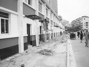 人行道上蓋起一排房屋,行人只能走到馬路上,汽車、助動(dòng)車不時(shí)擦身而過,險(xiǎn)象環(huán)生。昨天,讀者殷先生致電本報(bào),反映南車站路西側(cè)人行道上突然“長(zhǎng)出”一排房屋。