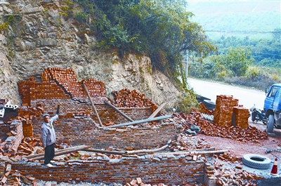 此后雖有干擾,唐家仍開(kāi)挖地基。到2008年,8米多高的山腳終于被他“掏”出一塊數(shù)百平方米的空地。當(dāng)年5月,新房墻體已建到1米高,紙坊城管所和村委會(huì)先后下通知說(shuō)他建房違法,隨后紙坊街道辦事處將墻體強(qiáng)行拆除。