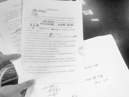 謝好子說(shuō),在今年2月的一天,他接到了鎮(zhèn)長(zhǎng)郭玉瑞的電話,要求帶上村委會(huì)的公章到鎮(zhèn)政府。到了鎮(zhèn)政府,郭玉瑞直接拿出一份土地轉(zhuǎn)讓補(bǔ)償協(xié)議,要求將大路口村的70畝土地轉(zhuǎn)讓給洛陽(yáng)國(guó)裕房地產(chǎn)開發(fā)有限公司,上面蓋有該公司的合同專用章,代表人簽字處已經(jīng)寫上了陳躍通的名字。這份合同要求將大路口村的70畝土地以每畝25萬(wàn)元的價(jià)格轉(zhuǎn)讓給開發(fā)商。謝好子提出25萬(wàn)元的價(jià)格太低,且沒有經(jīng)過(guò)村民委員會(huì)的同意。后經(jīng)過(guò)簡(jiǎn)單的協(xié)商,郭玉瑞提出將每畝土地的價(jià)格上升到30萬(wàn)元,并直接在合同上做了改動(dòng)。目前,村里也沒有見到過(guò)這份合同簽訂后對(duì)方的任何款項(xiàng)。