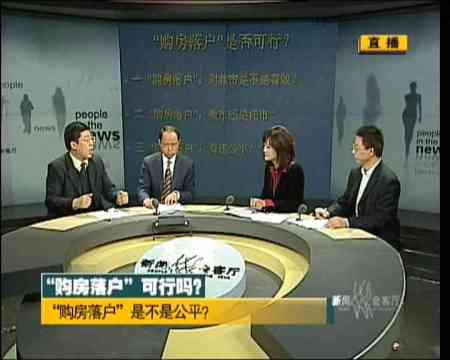 李小萌:歡迎來到正在直播的《新聞會客廳》。金融危機(jī),樓市低迷,手里拿著錢想買房,依然覺得房價(jià)過高的購房者著急,開發(fā)商著急,政府也著急,著急就要想辦法,幾天以前,我們在討論購房退稅政策是否可行,是否合理。這兩天我們又看到消息說,廣東省將會成為繼多個(gè)城市之后首個(gè)實(shí)現(xiàn)購房落戶政策的省份,一時(shí)間人們也在討論購房落戶這個(gè)政策。今天我們也來湊個(gè)熱鬧,今天請到的嘉賓是北京大學(xué)法學(xué)院教授王錫鋅。旁邊一位是北京師范大學(xué)房地產(chǎn)研究中心教授董藩。他們兩位上次在關(guān)于購房退稅政策的時(shí)候就是各執(zhí)一詞,爭個(gè)不相上下,看看今天觀點(diǎn)是不是會一致。另外我們還請到了媒體觀察員吳定平,也歡迎你。我們先來通過一段短片來了解一下購房落戶政策。