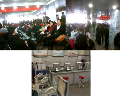 為了了解過(guò)戶的實(shí)際情況,記者采用了隱蔽拍攝的方式。在朝陽(yáng)區(qū)房產(chǎn)交易中心記者看到,整個(gè)大廳到處都是排隊(duì)等待過(guò)戶和辦證的購(gòu)房者。幾排座椅已經(jīng)坐滿了人,過(guò)道上和各個(gè)窗口都擠滿了人。有的人從早上5點(diǎn)就起來(lái)排號(hào),在長(zhǎng)時(shí)間的等待中,甚至都睡著了。由于怕錯(cuò)過(guò)號(hào),有的人到了吃飯時(shí)就隨便買(mǎi)點(diǎn)盒飯打發(fā),記者了解到,最近幾周來(lái),這里都是人山人海。