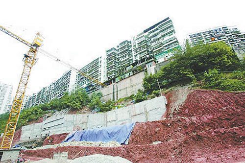 一年前,施工隊(duì)陸陸續(xù)續(xù)地來(lái)到這里,將這里的常青樹一一砍倒。接著,施工隊(duì)開來(lái)推土機(jī),鏟平了小土坡。他們用了一天的時(shí)間,就在這里搭起了一整片工棚。居民們聽說(shuō),這里將建起一幢高達(dá)16層的樓房,一個(gè)叫重慶市運(yùn)發(fā)房地產(chǎn)開發(fā)有限公司的單位則是樓盤的承建者。