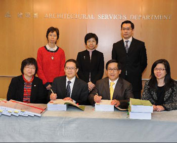 香港建筑署工程策劃總監(jiān)袁家達代表特區(qū)政府與金門建筑有限公司總裁何安誠簽署合約。合約包括設(shè)計和建造香港館、內(nèi)部裝修、展覽裝置、園境設(shè)計、保養(yǎng)維修及在上海世博結(jié)束后的拆卸工程。
