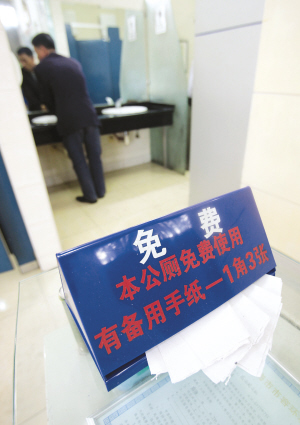 以前,公廁收費(fèi)后會(huì)提供廁紙;而現(xiàn)在,看到“1角3張”的招牌,不少人望而卻步。反正不強(qiáng)制購(gòu)買(mǎi)廁紙,隨手看完的報(bào)刊雜志,都成了“廢物利用”的材料。