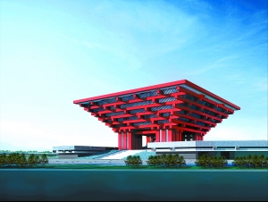 在上海市中心黃浦江兩岸,南浦大橋和盧浦大橋之間的濱江地區(qū),名為“東方之冠”的2010年上海世博會(huì)中國(guó)國(guó)家館正準(zhǔn)備進(jìn)行最重要的一道妝扮——在展館外立面上安裝“中國(guó)紅”的裝飾板。年底之前,“東方之冠”將全面竣工,作為永久性場(chǎng)館建筑屹立在黃浦江畔。