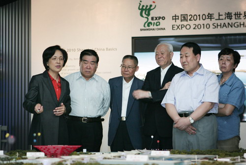 在鐘燕群的陪同下,老領(lǐng)導(dǎo)們參觀了世博會(huì)規(guī)劃展示廳,并登上世博大廈頂樓俯瞰建設(shè)中的世博園區(qū)。鐘燕群表示,上海世博會(huì)的各項(xiàng)籌備工作都在緊張有序的進(jìn)行之中。世博園區(qū)建設(shè)、配套設(shè)施建設(shè)、參展方服務(wù)、運(yùn)營(yíng)、宣傳等工作齊頭并進(jìn),上海世博會(huì)組織者力爭(zhēng)“想細(xì)、想全、想一萬(wàn)、想到萬(wàn)一,抓深、抓細(xì)、抓落實(shí)、一抓到底”。鐘燕群還就老領(lǐng)導(dǎo)們關(guān)心的世博門(mén)票、參展進(jìn)展、世博交通、展館接待能力等情況進(jìn)行了詳細(xì)介紹。