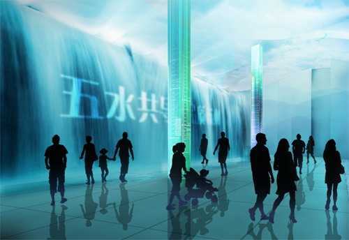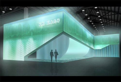 杭州館展區(qū)外立面采用城市方舟的設(shè)計主題,五水共導的水幕卷蓬猶如偉岸的城市方舟從中駛出,使參觀者在遠距離就能感受到展館的氛圍。最新的光電技術(shù),將營造出一個晶瑩剔透水晶般的展館,并以醒目的位置,展示獨特的杭州城市標志。此外,弧型的水幕若隱若現(xiàn),當參觀者踏入展館的那一刻,周圍以及頭頂環(huán)繞的環(huán)境將共同營造出一座聞名中外的山水城市。