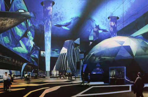 上海世博會(huì)主題館——未來(lái)館分為“昨日之夢(mèng)”、“理想與實(shí)踐”、“多種可能性”、“夢(mèng)想正在實(shí)現(xiàn)”四個(gè)部分。展館從“昨日之夢(mèng)”開(kāi)始重溫人類的實(shí)踐過(guò)程,運(yùn)用影片、書(shū)籍和雕塑等方式展示從古至今人們對(duì)未來(lái)城市的幻想、設(shè)計(jì)與實(shí)踐,并向參觀者展現(xiàn)當(dāng)今的實(shí)踐成果和未來(lái)城市是建立在今日挑戰(zhàn)基礎(chǔ)上的理念。