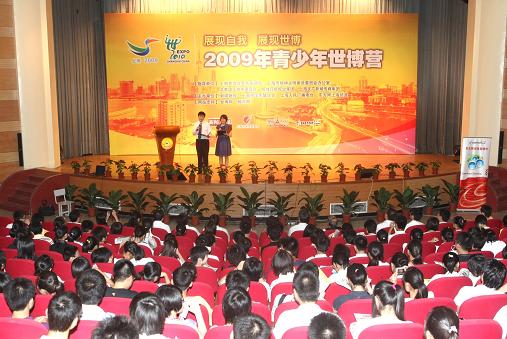 8月8日上午,來(lái)自上海80所市、區(qū)實(shí)驗(yàn)性示范性中學(xué)以及江浙等省多所重點(diǎn)中學(xué)的500名優(yōu)秀中學(xué)生,參加了在上海市復(fù)興高級(jí)中學(xué)內(nèi)舉行的2009年青少年世博營(yíng)開(kāi)營(yíng)儀式暨重點(diǎn)中學(xué)學(xué)生會(huì)主席論壇,倡議青少年“全面投身世博,奏響青春樂(lè)章”。