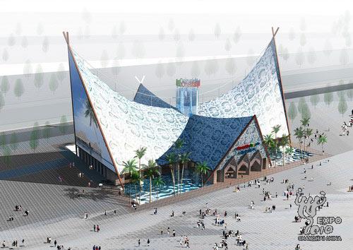 占地面積3000平方米的馬來西亞館,將采用可循環(huán)利用的油棕、塑膠等材料建筑而成,重點(diǎn)展現(xiàn)馬來西亞的獨(dú)特風(fēng)情和團(tuán)結(jié)的民族精神。展館的設(shè)計(jì)靈感源自馬來西亞傳統(tǒng)建筑。整個(gè)建筑由兩個(gè)高高翹起的坡屋頂組成,線條優(yōu)美而極具動(dòng)感,屋頂尖端的交叉構(gòu)架是馬來西亞本土建筑的一個(gè)符號。