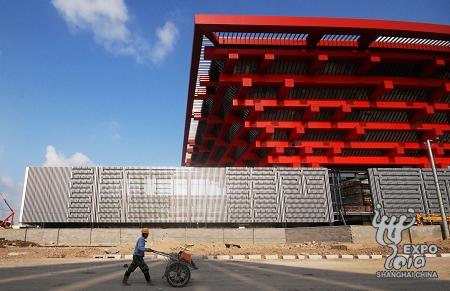 昨日(9月3日),在上海世博會(huì)標(biāo)志性建筑之一的中國(guó)地區(qū)館,“篆刻”外墻即將完成施工。中國(guó)地區(qū)館的外墻采用中國(guó)古老文字——篆書來作為裝飾,整個(gè)外墻間隔放置一組“篆刻文字”,組成中國(guó)傳統(tǒng)的二十四節(jié)氣。中國(guó)館由國(guó)家館、地區(qū)館和港澳館等組成,地區(qū)館將為大陸各省、市、區(qū)提供展覽場(chǎng)所。