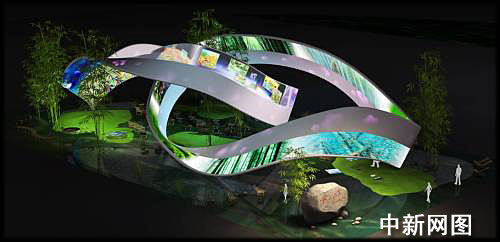 李沛介紹,整個(gè)展館將掩映于竹林碧水之間,環(huán)體主體材料為竹結(jié)構(gòu),外表則用紙作裝飾,十分環(huán)保。展館分為一個(gè)立體影院和自然桃花源、人文桃花源、理想桃花源三方面的內(nèi)容。其中自然桃花源以自然風(fēng)光為主要內(nèi)容,向觀眾展現(xiàn)湖南秀美的湖光山色,使其感受到大自然的博大睿智;人文桃花源則是表達(dá)都市的理解、關(guān)愛與和諧,表達(dá)“惟楚有才,于斯為盛“的人文情懷;理想桃花源則是表現(xiàn)人與城市、與自然的融合,觀眾們可以用電子壁畫等多媒體現(xiàn)代手段在現(xiàn)場任意涂鴉,抒發(fā)對于未來城市的暢想。