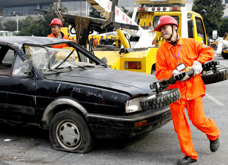 1月29日,由上海市公安局交警總隊組織的2010年上海市“清障施救”技能比武在浦東科技館停車場舉行,全市10個中心區(qū)和寶山區(qū)、閔行區(qū)以及高架、高速等高等級道路清障施救網絡的16家單位參加了比武活動。大賽模擬城市道路發(fā)生交通事故,車輛發(fā)生翻車,要求搶險人員快速處理,以防二次事故發(fā)生。此舉旨在確保2010年上海世博會期間高強度車流情況下的城市道路安全暢通,提高道路清障施救人員面對突發(fā)險情時的應急處置能力。(孫國富 陳飛)