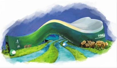 整個展館的外部造型,全部采用流暢的曲線,沒有生硬的幾何線條,突出了自然的特色。外墻的色調(diào)用明快的綠、白兩種顏色組成,綠色代表著江河源頭的生命氣息和凈土特色,白色象征著高聳的昆侖雪峰。參觀者可以看到清澈的江河之水在腳下淙淙流淌,皚皚的雪峰和自己咫尺相望。展館有意沒有過多采用多媒體手段,而盡量突出自然特色,目的是給參觀者一種真實而全新的審美體驗,同時也在凸顯青海 “環(huán)保立省”、 “生態(tài)立省”的發(fā)展之道。