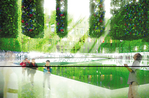“建筑內(nèi)部的綠色立體園林,也使用了可降解、可循環(huán)的材料,以盡可能達到最大限度的環(huán)保。這些綠色的植物,除了可以讓人們親近自然,還能夠幫助調(diào)節(jié)室內(nèi)溫度,讓參觀者更加舒適。屋頂?shù)奶柲茈姵匕,則提供了清潔而免費的能源!狈娇烧f。
