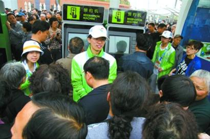 “請(qǐng)問(wèn)中國(guó)館預(yù)約點(diǎn)在哪里? ”今天上午9:00,記者從上南路六號(hào)口走進(jìn)世博園區(qū),耳邊不時(shí)傳來(lái)一陣陣詢問(wèn)聲。世博園區(qū)內(nèi)的廣播不斷播音道:“中國(guó)館參觀需要全程預(yù)約,請(qǐng)參觀者提前去預(yù)約!弊哌M(jìn)園區(qū)的參觀者紛紛向身邊的志愿者、服務(wù)中心工作人員求助,詢問(wèn)預(yù)約機(jī)的地點(diǎn)。