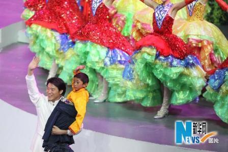 兩位來自青海玉樹地震災(zāi)區(qū)的藏族小朋友也在這時(shí)出現(xiàn)在了舞臺上。他們與三個(gè)三口之家走到一起,五個(gè)孩子手拉著手,深情地緊緊擁抱。舞臺上的演員們“心手相連”,表達(dá)了人類必須團(tuán)結(jié)一心相互支撐、攜手面對未來一切挑戰(zhàn)的寓意。