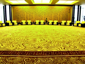 ●正北廳為玄廳。北廳五行屬水,水色玄(即黑色)。為此,藝術(shù)品則以傳統(tǒng)書法的《論語》和《道德經(jīng)》展示其中。