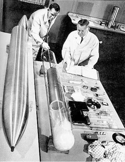 這個(gè)穿越時(shí)空的禮物,有著鉻銅合金制成的外殼,看起來就像一個(gè)兩米長的巨大的子彈。它里面所裝載的,除了那些讓當(dāng)時(shí)人們自豪的科學(xué)發(fā)明和日常用品,還包括一段紀(jì)錄片、存有超過1000萬字文檔的微縮膠片,以及三位“對(duì)時(shí)代做出巨大貢獻(xiàn)”的人給后代的留言,其中就包括愛因斯坦。