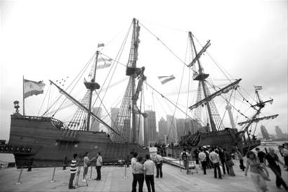 昨天下午,當(dāng) “安達(dá)盧西亞”號(hào)在上海國(guó)際客運(yùn)中心緩緩靠岸時(shí),沒有汽笛的喧囂,沒有引擎的轟鳴,只有岸上熱烈的掌聲和船員們歡快的笑聲。這艘保持了17世紀(jì)馬尼拉帆船外形的三桅大船從去年12月開始建造, 3個(gè)月前從西班牙南部的塞維亞港口出發(fā),一路穿越地中海、紅海、亞丁灣和印度洋,終于駛?cè)朦S浦江。