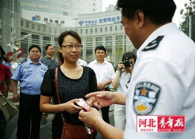 唐山在今年的5月份也推行了“尋找紅燈止步第一人”的活動(dòng)。只要市民在唐山市的各大十字路口第一個(gè)遵守交通規(guī)則,遇紅燈止步,就可以在路口的值班交警那里領(lǐng)到一張抽獎(jiǎng)卡參加抽獎(jiǎng)。