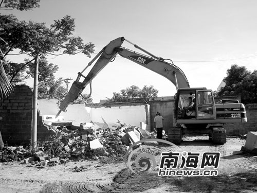 至今日止,鎮(zhèn)海村11宗違法建筑中,已有6戶自行拆除。根據(jù)?谑械慕y(tǒng)一拆違工作部署,秀英區(qū)今日對(duì)鎮(zhèn)海村的5宗違法建筑采取了強(qiáng)制拆除行動(dòng)。