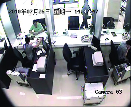 26日14時36分左右,一男子來到奎文區(qū)某銀行營業(yè)廳,站在3號柜臺前徘徊。此時,銀行里只有很少幾名顧客在辦理業(yè)務。14時37分,男子見一位女士正在3號柜臺辦理業(yè)務,就快步上前用一只胳膊夾住女士的脖子,另一只手掏出匕首和一個黑色塑料袋,將塑料袋從窗口中塞給坐在柜臺里面的女營業(yè)員,讓營業(yè)員把所有的錢都裝進塑料袋。