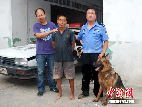 中新網(wǎng)周口8月6日電(記者 齊永 )一個(gè)多月前,鄲城縣虎崗鄉(xiāng)梁老家行政村村民王某在焦作市殺人后畏罪潛逃。而令他十分費(fèi)解的是其剛在老家附近出現(xiàn)就被聞?dòng)嵹s到的鹿邑警方緝拿歸案,況且還是栽倒在一條神奇的警犬手里。8月5日,在王某被移交給焦作警方時(shí)仍是一臉的沮喪和不解(如圖)。