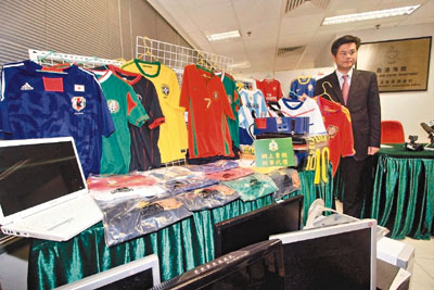 中新網(wǎng)7月9日電 據(jù)香港文匯報(bào)報(bào)道,南非世界杯掀起足球熱潮,售價(jià)僅及正版球衣1/3價(jià)錢的冒牌球衣也于各大甩賣網(wǎng)站熱賣。香港海關(guān)近日成功破獲18宗網(wǎng)上售賣侵權(quán)物品案,搜獲逾3000件冒牌貨及17臺(tái)計(jì)算機(jī),包括800件質(zhì)量差劣的冒牌球衣,總值逾39萬元。被捕的22名男女中,包括3名大專學(xué)生、補(bǔ)習(xí)老師,甚至?xí)?jì)師等專業(yè)人士,涉及經(jīng)營該等不法副業(yè),各人暫準(zhǔn)保釋候查。