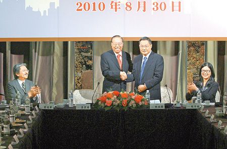 臺港兩會第一次聯(lián)席會議昨日上午在晶華酒店舉行,包括“陸委會正副主委”賴幸媛、高長、趙建民、策進(jìn)會董事長林振國、香港財(cái)政司司長曾俊華、協(xié)進(jìn)會主席李業(yè)廣、香港政制及內(nèi)地事務(wù)局局長林瑞麟等逾四十位兩會成員參加,達(dá)成七項(xiàng)合作共識。