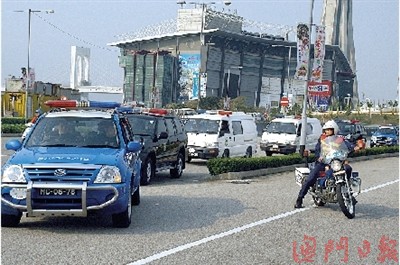 歐文龍囚車由特警開路抵終審法院。(圖片來源:澳門日報)