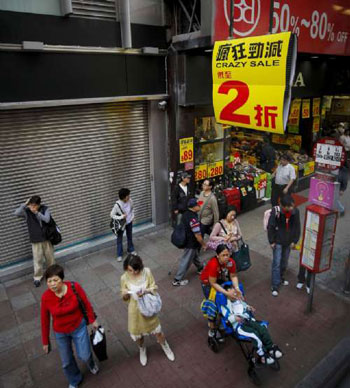 英國媒體6日刊登了一篇曾蔭權的訪問報道,內(nèi)容談到特區(qū)政府如何應對國際金融海嘯的沖擊。曾蔭權說,他從未見過如此急速的經(jīng)濟衰退,預計經(jīng)濟收縮可能較特區(qū)政府預期的2%至3%為高。“本年前兩個月的出口下跌接近四分之一,這大概是自二次大戰(zhàn)以來最厲害的跌幅!彼m(xù)道,自90年代中國成為“世界工廠”開始,轉口貿(mào)易已成為香港其中一項最重要的“經(jīng)濟引擎”。